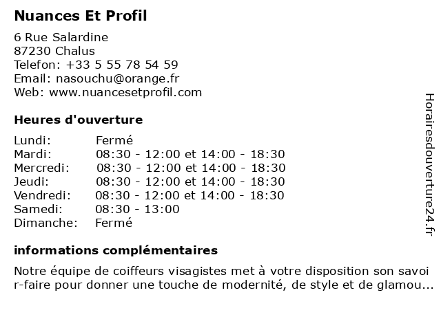 | Mardi | 08:30-12:00 et 14:00-18:30 |