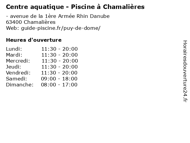 1 Centre aquatique - Piscine à Chamalières (Vacances scolaires (hors vacances d'été)) (Distance: 0,00 km) - avenue de la 1ère Armée Rhin Danube, 63400 Chamalières aquatique, centre, chamalières, d'un sauna, d'un solarium, d'été, hors, piscine, scolaires, spa, vacances 2 Centre aquatique - Piscine à Chamalières (Vacances d'été) (Distance: 0,00 km) - avenue de la 1ère Armée Rhin Danube, 63400 Chamalières aquatique, centre, chamalières, d'un sauna, d'un solarium, d'été, piscine, spa, vacances 3 Piscine de Coubertin à Clermont Ferrand (Distance: 1,41 km) - rue Pierre de Coubertin, 63100 Clermont-Ferrand clermont, coubertin, d'un sauna, d'un solarium, de, ferrand, piscine, spa 4 Piscine de Coubertin à Clermont Ferrand (Vacances scolaires (hors vacances d'été)) (Distance: 1,41 km) - rue Pierre de Coubertin, 63100 Clermont-Ferrand clermont, coubertin, d'un sauna, d'un solarium, d'été, de, ferrand, hors, piscine, scolaires, spa, vacances 5 Centre de coaching aquatique Aquazenith (Distance: 7,88 km) 40 rue de Sarliève, 63800 Cournon-d'Auvergne aquatique, aquazenith, centre, coaching, d'un sauna, d'un solarium, de, piscine, spa 6 Fédération Pêche Et Protection Milieu Aquatique 63 (Distance: 8,27 km) Allée des Eaux et Forêts, 63370 Lempdes 63, aquatique, et, fédération, milieu, protection, pêche |