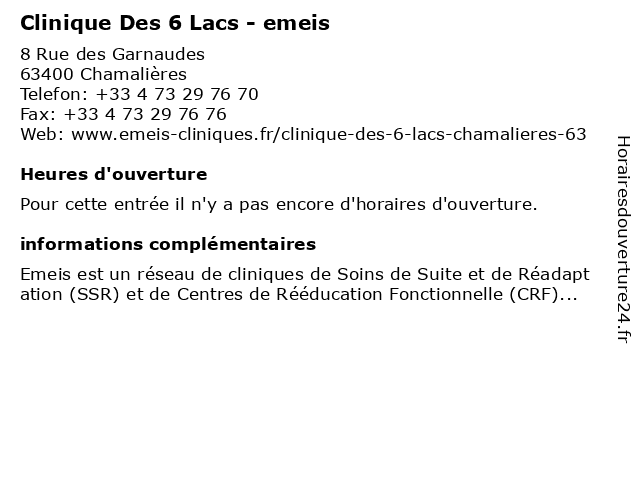 | Appeler Clinique Des 6 Lacs - emeis | |