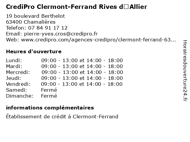 Termes de recherche pour CrediPro Clermont-Ferrand Rives d’Allier:de, clermont, ferrand, puy, agence, crédit, dôme, rives, financier, d’allier, credipro, emprunts |