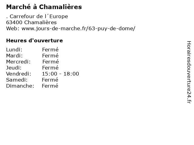 1 Marché à Chamalières (Distance: 0,44 km) . Square Verdun, 63400 Chamalières chamalières, frutas, hortalizas, marché, mercado, verduras 2 Au Petit Marché (Distance: 0,36 km) 6 Rue Lufbery, 63400 Chamalières au, boucheries, chamalières, in, lesserteur, mall, marché, marketcharcuterie, petit, the, viandes 3 Marché à Clermont-Ferrand (Distance: 1,47 km) . Place Littré, 63000 Clermont Ferrand clermont, ferrand, frutas, hortalizas, marché, mercado, verduras 4 Marché à Clermont-Ferrand (Distance: 1,59 km) . Saint Pierre, 63000 Clermont Ferrand clermont, ferrand, frutas, hortalizas, marché, mercado, verduras 5 Marché à Clermont-Ferrand (Distance: 1,84 km) . Rue Ballainvilliers, 63000 Clermont Ferrand clermont, ferrand, frutas, hortalizas, marché, mercado, verduras 6 Marché à Clermont-Ferrand (Distance: 1,88 km) . Place Chateaubriand, 63000 Clermont Ferrand clermont, ferrand, frutas, hortalizas, marché, mercado, verduras |
