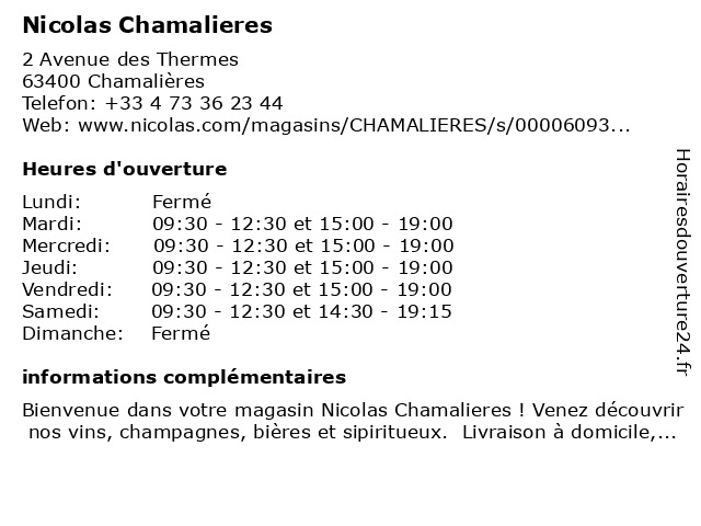 | Mercredi | 09:30-12:30 et 15:00-19:00 |