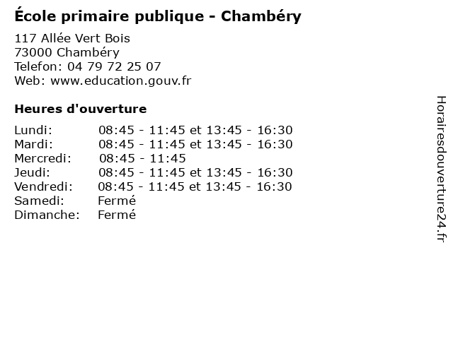 | Lundi | 08:45-11:45 et 13:45-16:30 |