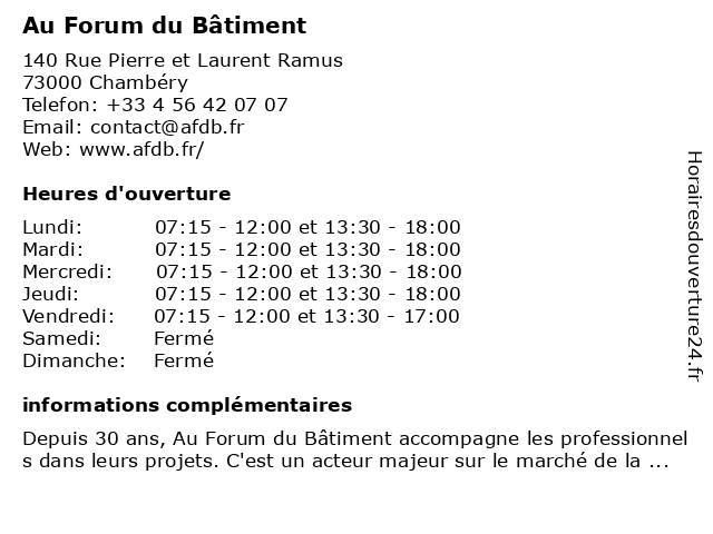 | Lundi | 07:15-12:00 et 13:30-18:00 |