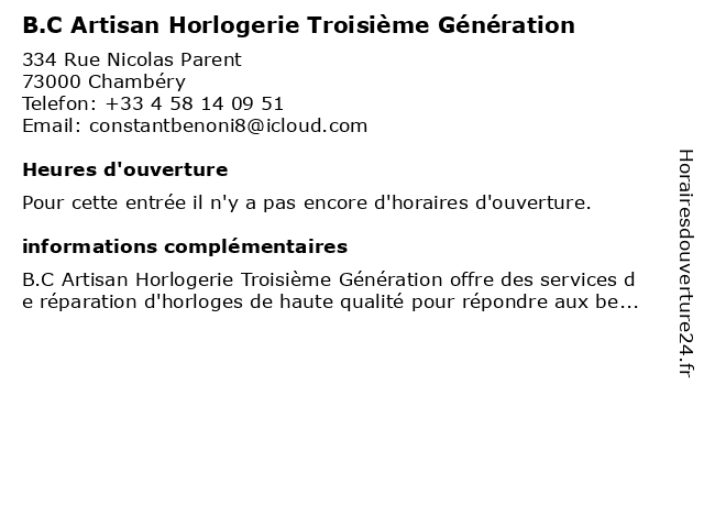 | Appeler B.C Artisan Horlogerie Troisième Génération | |
