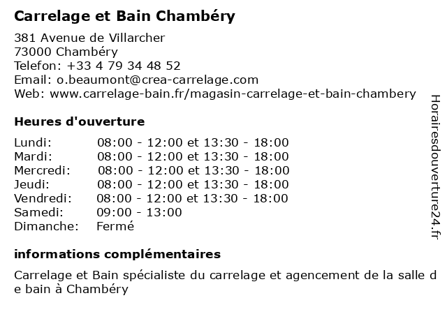 1 La Boutique Du Carrelage (Distance: 0,10 km) 500 Rue Pierre Et Laurent Ramus, 73000 Chambery boutique, carrelage, du, la, magasins, papiers, peints, peintures, verre 2 Bg Bain (Distance: 6,58 km) . avenue de Chambéry, 73230 Saint Alban Leysse accessoires, ameublement, bain, bg, douche, magasin, robinetterie 3 C.R.I.P Carrelage Revêtement Isolation Plafond (Distance: 8,95 km) 449 Rue Emile Zola, 73490 La Ravoire c.r.i.p, carrelage, isolation, plafond, revêtement 4 Au Fil du Bain Metral Passy (Distance: 11,14 km) 215 Avenue de Saint-Simond, 73100 Aix-les-Bains au, bain, du, fil, metral, passy 6 Gomez Carrelage (Distance: 18,13 km) 135 Rue Emmanuel Cretet, 73330 Le Pont-de-Beauvoisin carrelage, gomez |