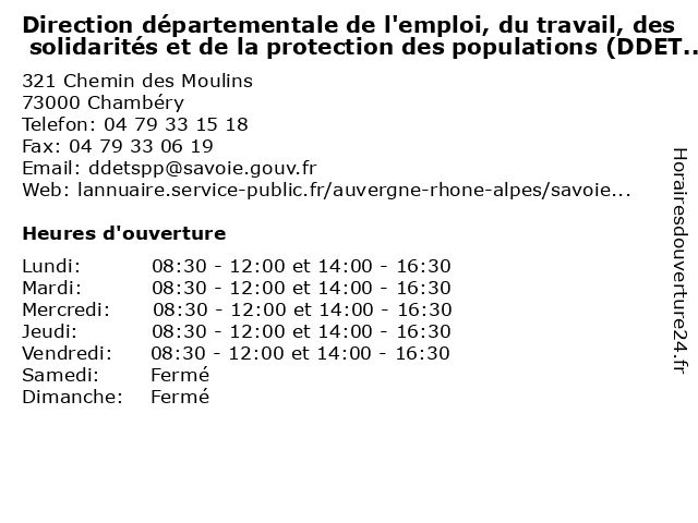 1 Commission Départementale de Conciliation (Distance: 0,03 km) 321 Chemin des Moulins, 73011 Chambéry administration, assoc, commission, conciliation, de, départementale, services, services publics 2 Pôle Emploi Chambéry Mudry (Distance: 0,46 km) 85 rue Mudry, 73000 Chambéry administration, agence, candidats, chamb2ry, chambéry, emploi, employeurs, mudry, offres, pole, public, publique, pôle, recherche, service, travail 3 Maison De L'information Sur La Formation Et L'emploi MIFE (Distance: 0,48 km) 379 Faubourg Montmélian, 73000 Chambéry de, et, formation, l'emploi, l'information, la, maison, mife, sur 4 Paierie départementale - Savoie (Distance: 0,59 km) 35 rue Pasteur, 73000 Chambéry administration, association, déclarations, départementale, emplois, employeurs, paierie, savoie, travails 5 Délégation militaire départementale - DMD (Distance: 0,62 km) 26 Rue Pasteur, 73000 Chambery assistante, dmd, délégation, départementale, militaire 6 TridenTT Travail Temporaire (Distance: 0,77 km) 178b Quai Charles Roissard, 73000 Chambéry cdd, emploi, interim, partiel, recrutement, temporaire, travail, tridentt |