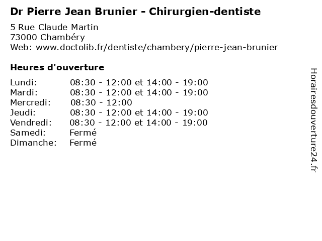 | Lundi | 08:30-12:00 et 14:00-19:00 |