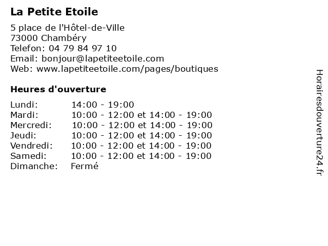 | Mercredi | 10:00-12:00 et 14:00-19:00 |