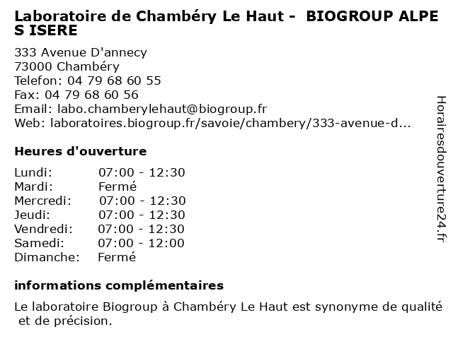Termes de recherche pour Laboratoire de Chambéry Le Haut - BIOGROUP ALPES ISERE:le, de, chambery, laboratoire, haut, alpes, isere, biogroup, dépistages, laboratoire de diagnostic |
