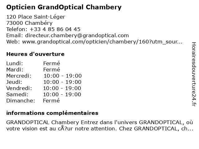 1 Opticien Chambery GrandOptical (Distance: 0,00 km) Place Saint-Léger, 73000 Chambéry chambery, examen de la vue, grandoptical, lentilles de contact, lentilles progressives, lunette ray ban, lunettes, lunettes anti-lumière bleue, lunettes de conduite de nuit, lunettes de conduites de nuit, lunettes de soleil, lunettes de soleil pour enfant, lunettes de soleil pour femme, lunettes de soleil pour homme, lunettes de vue, lunettes de vue femme, lunettes de vue homme, lunettes en 1h, lunettes progressives, opticien, opticien proche de chez moi, optique, sport à la vue, vérification de la vue 2 Yin Sushi Chambery (Distance: 0,18 km) Yin Sushi Chambery, 73000 Bassens chambery, restaurants, sushi, yin 3 Agence d'intérim Manpower Chambery Industrie Recrutement (Distance: 0,20 km) 1 Rue Jules Ferry, 73000 Chambéry agence de recrutement, agence intérim, agence pour l'emploi, cabinet de recrutement, cdi, intérim, recrutement 4 Opticien Chambéry - Optic 2000 (Distance: 0,23 km) 2 Rue Favre, 73000 Chambéry 2000, chambéry, lentilles de contact, lunettes de soleil, lunettes de vue, optic, optic2000, opticien, opticien optic2000, ray-ban, rayban 5 Opticien Krys (Distance: 0,25 km) 4 Rue Favre, 73000 Chambéry krys, magasin de lentilles correctrices, magasin de lunettes de soleil, magasin d’accessoires de mode, opticien, optométrie 6 Opticien Chambéry | Alain Afflelou (Distance: 0,32 km) 9 Rue Favre, 73000 Chambéry afflelou, alain, chambéry, magasin de lunettes de soleil, magasin d’accessoires de mode, opticien, optométrie |