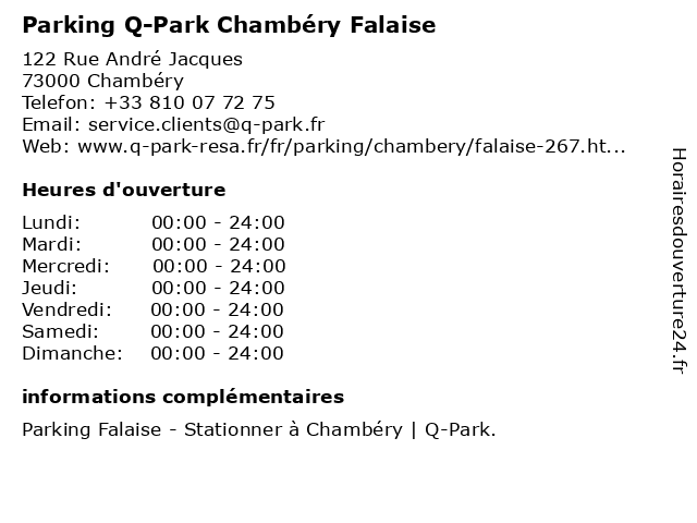1 Parking Q-Park Chambéry Barbot (Distance: 0,02 km) 55 Rue André Jacques, 73000 Chambéry barbot, chambéry, park, parking, stationnement 2 Mairie de Chambery/ Car park (Distance: 0,07 km) 568 Rue Michaud, 73000 Chambery automobile, car, chambery/, de, effia, mairie, park, parking, services 3 Parking Q-Park Chambéry Manège (Distance: 0,15 km) Rue de la République, 73000 Chambéry chambéry, manège, park, parking, stationnement 4 Indigo / Car park (Distance: 0,16 km) n/a Carré Curial, 73000 Chambery automobile, car, effia, indigo, park, parking, services 6 Mairie de Chambery / Car park (Distance: 0,25 km) n/a Place Monge, 73000 Chambery automobile, car, chambery, de, effia, mairie, park, parking, services |