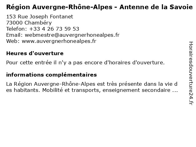 | Appeler Région Auvergne-Rhône-Alpes - Antenne de la Savoie | |