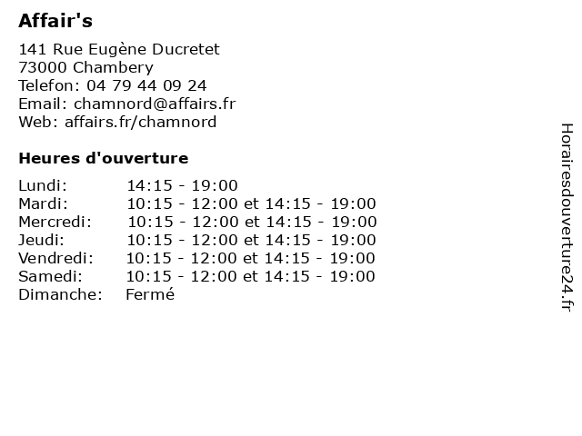 | Mardi | 10:15-12:00 et 14:15-19:00 |