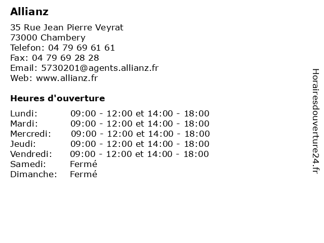 1 Allianz (Distance: 0,36 km) 54 Rue Frezier, 73001 Chambery allianz, assurance prêt, assurances, services 2 Allianz (Distance: 1,81 km) 27 Allee Albert Slyvestre, 73000 Chambery allianz, assurance prêt, assurances, services 3 Allianz (Distance: 2,55 km) - Rue de Bolliet, 73007 Chambery allianz, assurance prêt, assurances, services 4 Allianz (Distance: 4,68 km) 95 rue des Allobroges, 73290 La Motte Servolex allianz, assurances, bancaire, banque, services 6 Allianz (Distance: 14,04 km) 7 Rue Cabias, 73100 Aix Les Bains agents, allianz, assurance, assurances, brice, campione, courtiers, services |