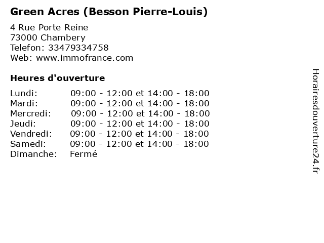 | Lundi | 09:00-12:00 et 14:00-18:00 |