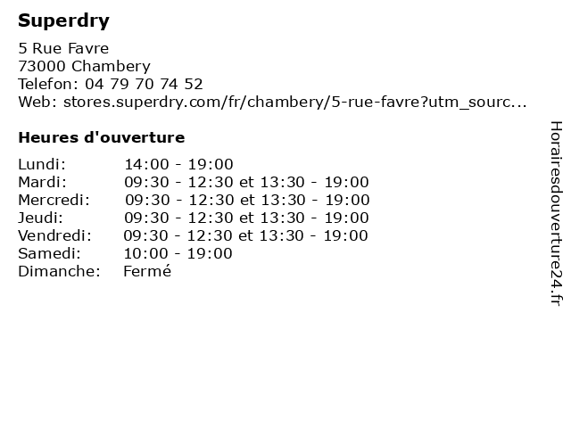 2 Superdry (Distance: 38,69 km)31 Rue Gambetta, 73200 Albertville superdry