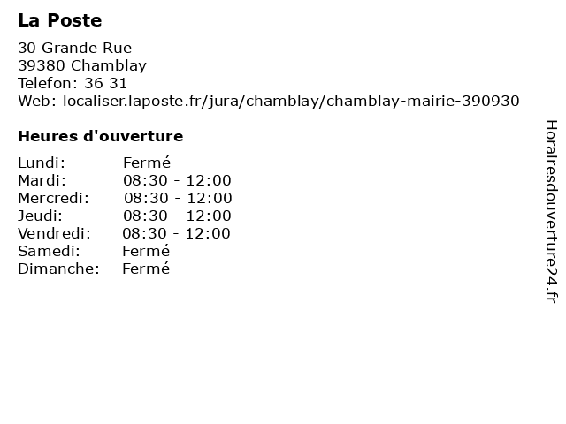 1 La Poste (Distance: 3,62 km) 1 Rue de l'Etang, 39600 Villers-Farlay express chronopost, la, poste, réexpédition internationale 2 La Poste (Distance: 4,21 km) 2 Route d'Ounans, 39380 Santans express chronopost, la, poste, réexpédition internationale 3 La Poste (Distance: 5,41 km) 2 Place des Anciens Combattants, 39380 Montbarrey express chronopost, la, poste, réexpédition internationale 4 La Poste (Distance: 7,46 km) 27 Rue de Strasbourg, 39330 Mouchard express chronopost, la, poste, réexpédition internationale 5 La Poste (Distance: 9,47 km) 35 Route Nationale 83, 25220 Roche-lez-Beaupré express chronopost, la, poste, réexpédition internationale 6 La Poste (Distance: 11,08 km) 16 place Saint-Etienne, 25440 Liesle agence, assurance, banque, banque postale, bureau de poste, chronopost, colis, courrier, dps, expéditions internationales, la, point, postale, poste, relais, timbres, téléphonie, ups, western union |