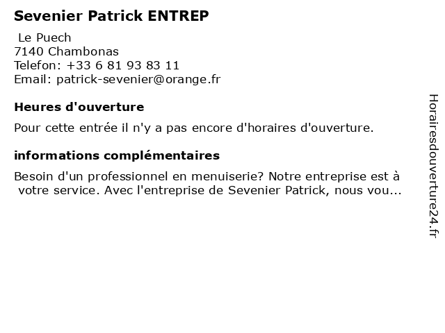 | Appeler Sevenier Patrick ENTREP | |