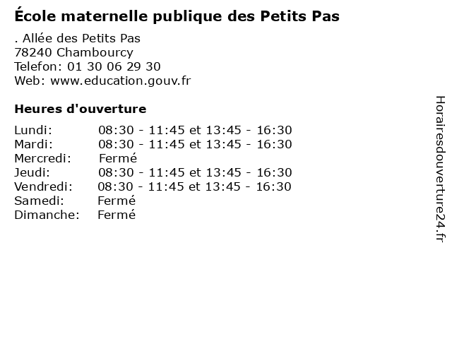 | Mardi | 08:30-11:45 et 13:45-16:30 |
