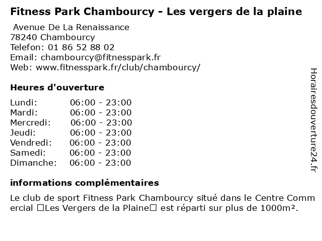 1 Fitness Boutique (Distance: 0,04 km) 80 Route de Mantes, 78240 Chambourcy boutique, centre, commercial, fitness 2 Fitness Park - Accueil (Distance: 0,13 km) - Avenue de la Renaissance, 78240 Chambourcy accueil, club, fitness, horaires, musculation, park, salle, sport 5 Pharmacie De La Plaine (Distance: 8,56 km) 20 Rue Pierre Louis Guyard, 78360 Montesson de, la, pharmacie, plaine 6 Centre Aquatique de la Plaine (Périodes Scolaires) (Distance: 9,16 km) 7 rue du bas de la Plaine, 78500 Sartouville aquatique, aquiatique, centre, de, espace, la, piscine, plaine, périodes, récréative, scolaires |