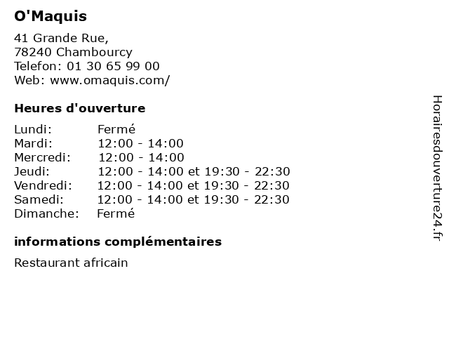 | Samedi | 12:00-14:00 et 19:30-22:30 |