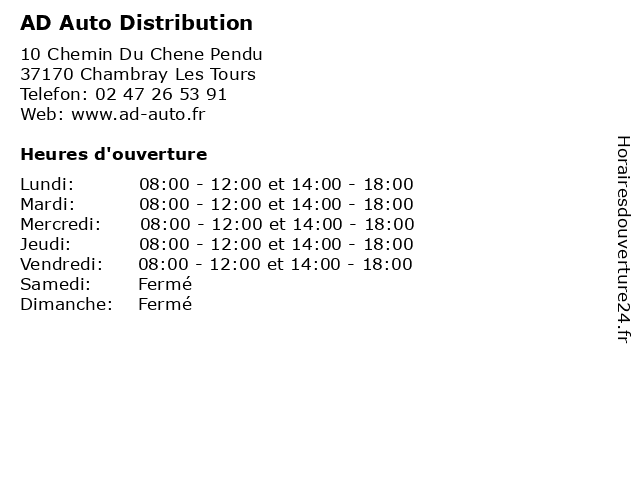 1 AD Auto Distribution (Distance: 0,06 km) 6 Chemin du Chene Pendu, 37170 Chambray les Tours ad, auto, automobiles, concessionnaire, distribution, garage, motos 2 AD Auto Distribution (Distance: 8,74 km) 2 rue Gustave Eiffel, 37300 Joue Les Tours ad, auto, automobiles, concessionnaire, distribution, garage, motos 3 AD Auto Distribution (Distance: 9,52 km) 3 Rue Du Viaduc, 37260 Monts ad, auto, automobiles, concessionnaire, distribution, garage, motos 4 AD Auto Distribution (Distance: 9,68 km) 10 Rue Joseph Cugnot, 37300 Joue Les Tours ad, auto, automobiles, concessionnaire, distribution, garage, motos 5 AD Auto Distribution (Distance: 12,64 km) 10 Rue de la Lande, 37540 Saint Cyr sur Loire ad, auto, automobiles, concessionnaire, distribution, garage, motos 6 AD Auto Distribution (Distance: 13,04 km) 13 Rue Chrstian Huygens, 37100 Tours ad, auto, automobiles, concessionnaire, distribution, garage, motos |