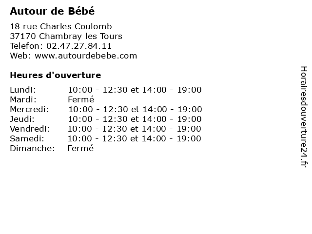 | Samedi | 10:00-12:30 et 14:00-19:00 |