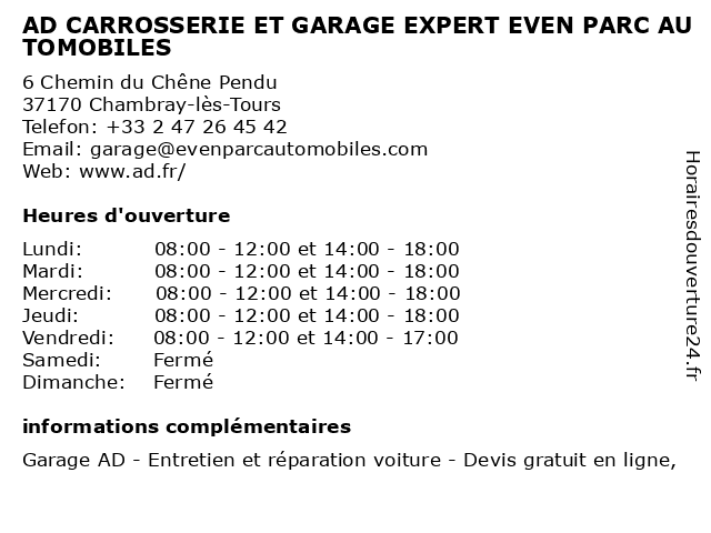 1 AD CARROSSERIE ET GARAGE EVEN PARC AUTOMOBILES (Distance: 0,00 km) 6 Chemin du Chêne Pendu, 37170 Chambray-lès-Tours ad, automobiles, carrosserie, et, even, garage, parc 2 AD Auto Distribution (Distance: 0,05 km) 6 Chemin du Chene Pendu, 37170 Chambray les Tours ad, auto, automobiles, concessionnaire, distribution, garage, motos 3 AD Auto Distribution (Distance: 8,80 km) 2 rue Gustave Eiffel, 37300 Joue Les Tours ad, auto, automobiles, concessionnaire, distribution, garage, motos 4 AD Auto Distribution (Distance: 9,52 km) 3 Rue Du Viaduc, 37260 Monts ad, auto, automobiles, concessionnaire, distribution, garage, motos 5 AD Auto Distribution (Distance: 9,73 km) 10 Rue Joseph Cugnot, 37300 Joue Les Tours ad, auto, automobiles, concessionnaire, distribution, garage, motos 6 AD Auto Distribution (Distance: 12,72 km) 10 Rue de la Lande, 37540 Saint Cyr sur Loire ad, auto, automobiles, concessionnaire, distribution, garage, motos |
