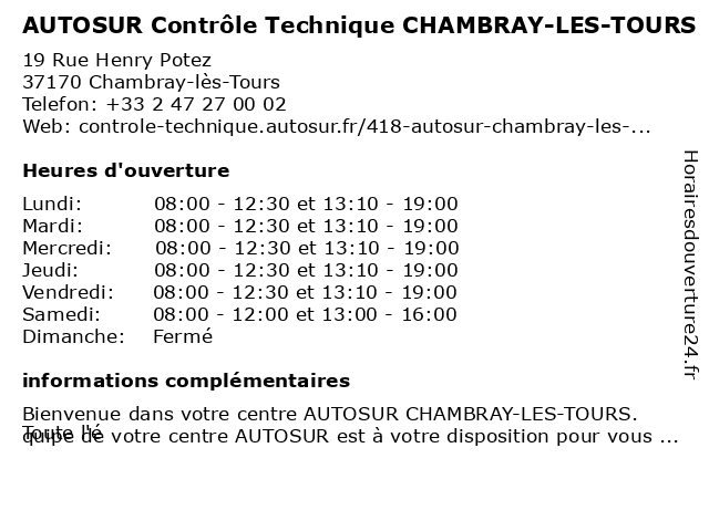 | Lundi | 08:00-12:30 et 13:10-19:00 |