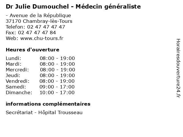 | Lundi | 08:00-19:00 |