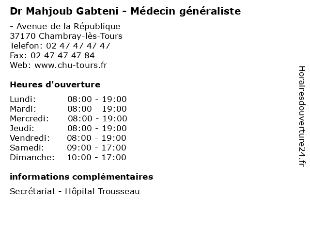 1 Dr Ghazoua Gabteni - Radiologue (Distance: 32,24 km) 1 rue du Docteur Martinais, 37600 Loches consultation, docteur, dr, gabteni, ghazoua, med, médecin, radiologue, traitement 2 Dr Céline Barrault - Médecin généraliste (Distance: 0,00 km) - Avenue de la République, 37170 Chambray-lès-Tours barrault, celine, consultation, céline, docteur, dr, généraliste, med, médecin, traitement 3 Dr Julien Conrad - Médecin généraliste (Distance: 0,00 km) - Avenue de la République, 37170 Chambray-lès-Tours conrad, consultation, docteur, dr, généraliste, julien, med, médecin, traitement 4 Dr Charles Delale - Médecin généraliste (Distance: 0,00 km) - Avenue de la République, 37170 Chambray-lès-Tours charles, consultation, delale, docteur, dr, généraliste, med, médecin, traitement 5 Dr Julie Dumouchel - Médecin généraliste (Distance: 0,00 km) - Avenue de la République, 37170 Chambray-lès-Tours consultation, docteur, dr, dumouchel, généraliste, julie, med, médecin, traitement 6 Dr Olivier Jazeron - Médecin généraliste (Distance: 0,00 km) - Avenue de la République, 37170 Chambray-lès-Tours consultation, docteur, dr, généraliste, jazeron, med, médecin, olivier, traitement |