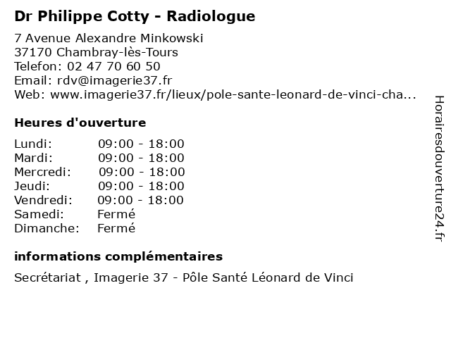 1 Dr Philippe Cotty - Radiologue (Distance: 6,12 km) 49 Boulevard Béranger, 37000 Tours consultation, cotty, docteur, dr, med, médecin, médecine, philippe, radiologue, traitement 2 Dr Philippe Cotty - Radiologue (Distance: 11,12 km) 1 Boulevard Alfred Nobel, 37540 Saint-Cyr-sur-Loire consultation, cotty, docteur, dr, med, médecin, médecine, philippe, radiologue, traitement 3 Dr Laurent Philippe - Médecin nucléaire - secrétariat (Distance: 0,17 km) 9 Avenue du Pr Alexandre Minkowski,, 37170 Chambray Les Tours dr, laurent, médecin, médecins, médicaments, nucléaire, philippe, santé, secrétariat, spécialiste 4 Maître Philippe Baron - Avocat (Distance: 5,43 km) 81 Bis rue de Boisdenier, 37000 Tours avocat, avocats, baron, cabinet, conseils, contentieux, juridique, justice, litiges, maître, philippe, services 5 Medecin Philippe Herve (Échographiste) (Distance: 5,72 km) 42 Origet, 37000 Tours docteur, herve, medecin, philippe, sante, services, échographiste 6 |