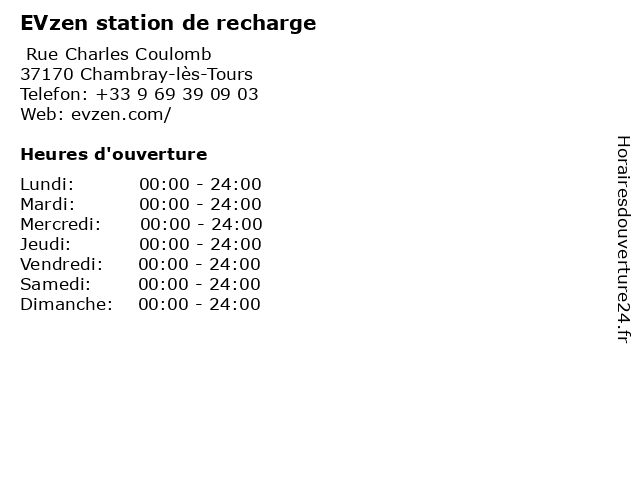 1 EVzen station de recharge (Distance: 4,70 km) 186 Boulevard Jean Jaurès, 37300 Joué-lès-Tours de, evzen, recharge, station 2 EVzen station de recharge (Distance: 55,90 km) 1 Rue André Boulle, 41000 Blois de, evzen, recharge, station 3 EVzen station de recharge (Distance: 57,01 km) 19 Rue Pierre Pleignard, 86100 Châtellerault de, evzen, recharge, station 4 Nissan - Borne de recharge électrique (Distance: 0,22 km) 7 Rue Paul Langevin, 37170 Chambray-lès-Tours borne, de, nissan, recharge, électrique 5 AS 24 (Distance: 0,29 km) Rue Paul Langevin, 37170 Chambray-lès-Tours 24, ad blue, as, diesel, gas station for truck, gnr 6 AS 24 (Distance: 0,29 km) Rue Paul Langevin, 37170 Chambray-lès-Tours 24, ad blue, as, diesel, gas station for truck, gnr |