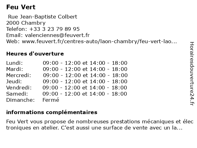1 Feu Vert (Distance: 0,00 km) Rue Jean-Baptiste Colbert, 02000 Chambry amortisseurs, ampoule, autoradio, batterie, chaussettes neige, chaînes neige, coffre de toit, feu, freinage, glacière, pneu, pneu 4 saisons, pneu hiver, remorque, révision, vert, vidange 2 Le Vert-Laon (Distance: 0,02 km) Le Vert Laon, 02000 Laon benghafour, laon, rachida, restaurants, vert 5 Pizza Feu De Bois (Distance: 39,20 km) 1 Allée de l'Église, 51110 Saint-Étienne-sur-Suippe bar, bistro, bistrot, bois, brasserie, café, de, feu, pizza, pub, restaurant, restauration, resto 6 Pizza Au Feu De Bois (Distance: 39,94 km) 135 Rue Georges Pompidou, 02100 Saint-Quentin au, bois, boissons, collations, de, feu, pizza, restaurants |
