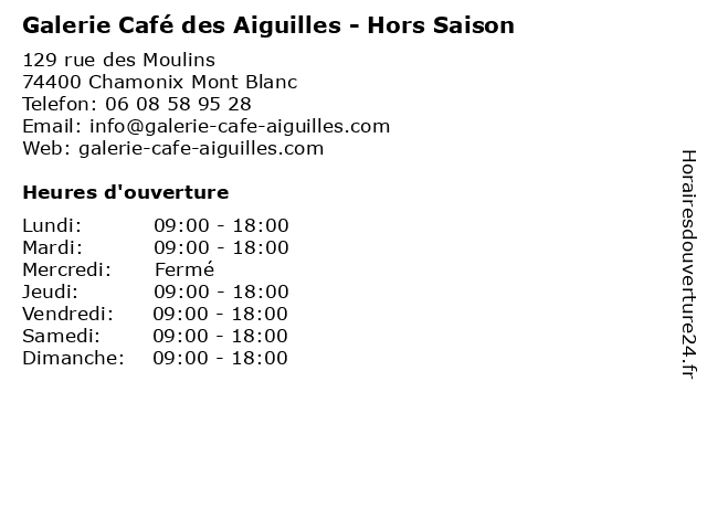 1 Galerie Café des Aiguilles - En Saison (Distance: 0,00 km) 129 rue des Moulins, 74400 Chamonix Mont Blanc aiguilles, artistes, boisson, café, des, en, exposition, galerie, saison 2 Galerie Mario Colonel (Distance: 0,15 km) 19 Rue Whymper, 74400 Chamonix-Mont-Blanc beauté, colonel, exposition, galerie, mario, photographies, scène 3 L'Atelier Café (Distance: 0,18 km) 8 Quai d Arve, 74400 Chamonix-Mont-Blanc bar, bistro, bistrot, brasserie, café, l'atelier, restaurant, restauration 4 Café Valentino (Distance: 0,20 km) 30 Place Balmat, 74400 Chamonix-Mont-Blanc cafe, café, margot, restaurants, valentino 5 Sherpa (hiver Hors-saison (Mai, Juin et Sept., Oct., Nov.) ) (Distance: 0,22 km) 190 Avenue Michel Croz, 74400 Chamonix-Mont-Blanc et, fondue ou pierre à griller, hiver, hors, juin, la commande en ligne, le prêt d’appareils à raclette, mai, marche, nov., oct., saison, sept., sherpa, supermarche 6 Restaurant Le Hors Pistes (Distance: 8,87 km) 1733 Chemin De La Carbotte, 74310 Les Houches hors, le, pistes, restaurant |