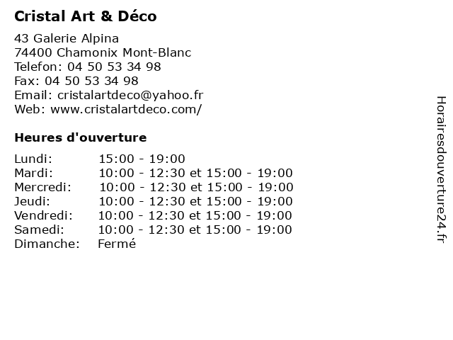 | Samedi | 10:00-12:30 et 15:00-19:00 |