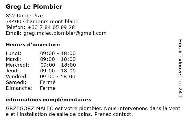 2 Ferraro Félix - Plombier (Distance: 17,88 km) 3 Route du Plan du Moulin, 74170 Les Contamines-Montjoie dépannage, felix, ferraro, félix, plombier, travaux 3 ETS Pierre Morand - Chauffagiste Plombier (Distance: 31,61 km) 2782 route Grandes Alpes, 74430 Biot chaudière, chauffage, chauffagiste, dépannage, etablissement, etablissement pierre morand, ets, morand, pierre, plombier 4 Baudin armand plombier (Distance: 33,15 km) 1870 Route de Monnaz, 74970 Marignier armand, baudin, plombier 5 Anthony Le Plombier (Distance: 40,60 km) 30 Route de la Batelle, 74360 La Chapelle-d'Abondance anthony, le, plombier 6 Express Plombier (Distance: 56,62 km) 7 Place du Porte Bonheur, 74100 Ville-la-Grand express, plombier |