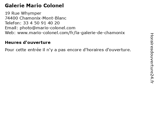 1 Galerie Café des Aiguilles - En Saison (Distance: 0,15 km) 129 rue des Moulins, 74400 Chamonix Mont Blanc aiguilles, artistes, boisson, café, des, en, exposition, galerie, saison 2 Galerie Café des Aiguilles - Hors Saison (Distance: 0,15 km) 129 rue des Moulins, 74400 Chamonix Mont Blanc aiguilles, artistes, boisson, café, des, exposition, galerie, hors, saison 3 Musée Alpin (Distance: 0,05 km) 89 avenue Michel Croz, 74400 Chamonix-Mont-Blanc alpin, exposition, musée, visite 4 Musée Alpin - Vacances scolaires (Distance: 0,05 km) 89 avenue Michel Croz, 74400 Chamonix-Mont-Blanc alpin, exposition, musée, scolaires, vacances, visite 5 Musée Alpin - Juillet et Août (Distance: 0,05 km) 89 avenue Michel Croz, 74400 Chamonix-Mont-Blanc alpin, août, et, exposition, juillet, musée, visite 6 Richardson (Salle d'exposition) (Distance: 18,70 km) 1715 Avenue André Lasquin, 74700 Sallanches aménagement, d'exposition, equipement, mobilier, richardson, salle |