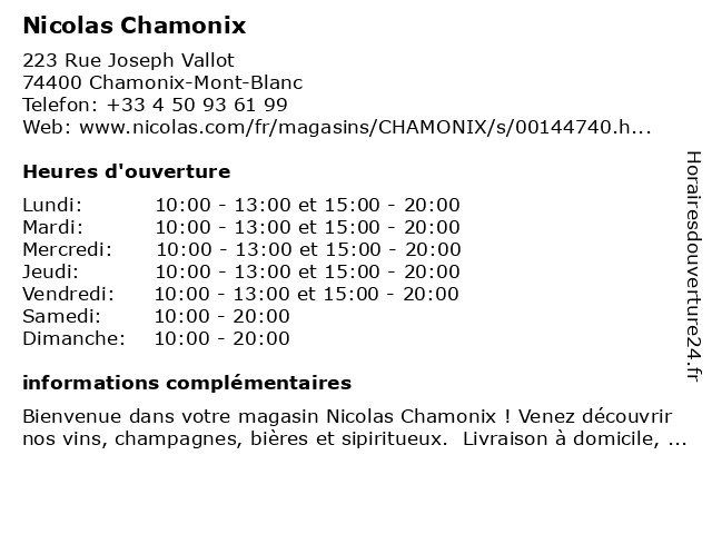 | Vendredi | 10:00-13:00 et 15:00-20:00 |