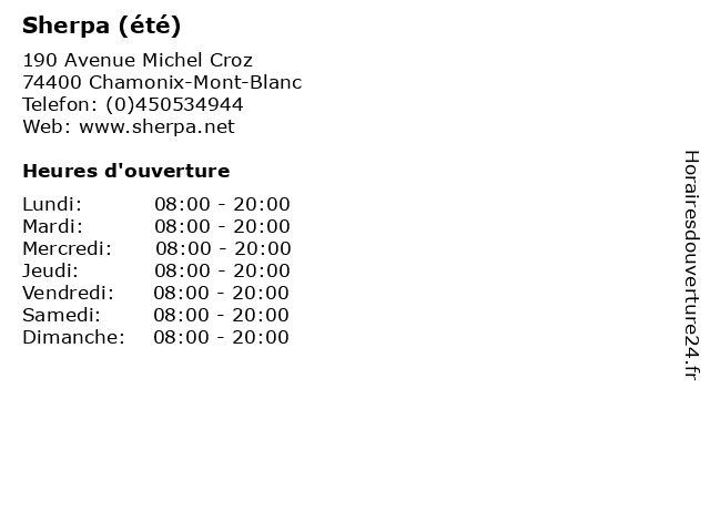 1 Sherpa (hiver en saison (Déc. - Avril) ) (Distance: 0,00 km) 190 Avenue Michel Croz, 74400 Chamonix-Mont-Blanc avril, déc., en, fondue ou pierre à griller, hiver, la commande en ligne, le prêt d’appareils à raclette, marche, saison, sherpa, supermarche 2 Sherpa (hiver Hors-saison (Mai, Juin et Sept., Oct., Nov.) ) (Distance: 0,00 km) 190 Avenue Michel Croz, 74400 Chamonix-Mont-Blanc et, fondue ou pierre à griller, hiver, hors, juin, la commande en ligne, le prêt d’appareils à raclette, mai, marche, nov., oct., saison, sept., sherpa, supermarche 3 Déchèterie (Été) (Distance: 11,58 km) - Rue de Egratz, 74190 Passy bennes, déchets, déchèterie, détritus, gravats, été 4 Sherpa (été ) (Distance: 14,96 km) 3801 Route de Cupelin, 74170 Saint-Gervais-les-Bains fondue ou pierre à griller, la commande en ligne, le prêt d’appareils à raclette, marche, sherpa, supermarche, été 5 Sherpa (été ) - En juillet et août (Distance: 15,83 km) - Route de Notre Dame de la Gorge, 74190 Les Contamines-Montjoie août, en, et, fondue ou pierre à griller, juillet, la commande en ligne, le prêt d’appareils à raclette, marche, sherpa, supermarche, été 6 Sherpa (été ) - Hors saison : en mai et juin (Distance: 15,83 km) - Route de Notre Dame de la Gorge, 74190 Les Contamines-Montjoie en, et, fondue ou pierre à griller, hors, juin, la commande en ligne, le prêt d’appareils à raclette, mai, marche, saison, sherpa, supermarche, été |