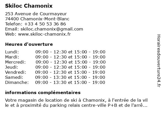 | Dimanche | 09:00-13:30 et 15:00-19:00 |