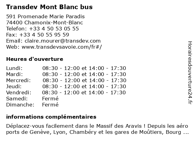 | Lundi | 08:30-12:00 et 14:00-17:30 |