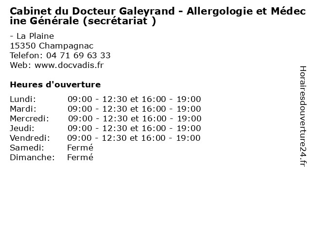 Termes de recherche pour Cabinet du Docteur Galeyrand - Allergologie et Médecine Générale (secrétariat ):du, et, cabinet, générale, medecine, santé, secretariat, allergologie, docteur, consultation, galeyrand |