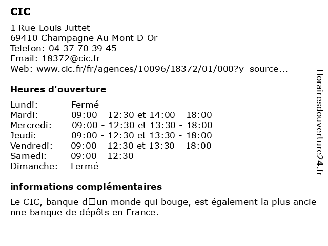 | Mercredi | 09:00-12:30 et 13:30-18:00 |