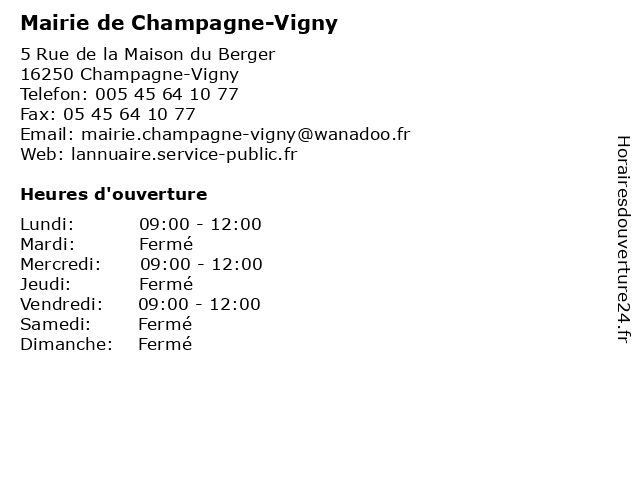 Termes de recherche pour Mairie de Champagne-Vigny:de, champagne, administration, mairie, vigny, service public |