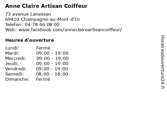 | Lundi | Fermé |