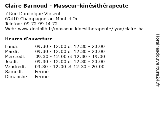 | Mardi | 09:30-12:00 et 12:30-20:00 |