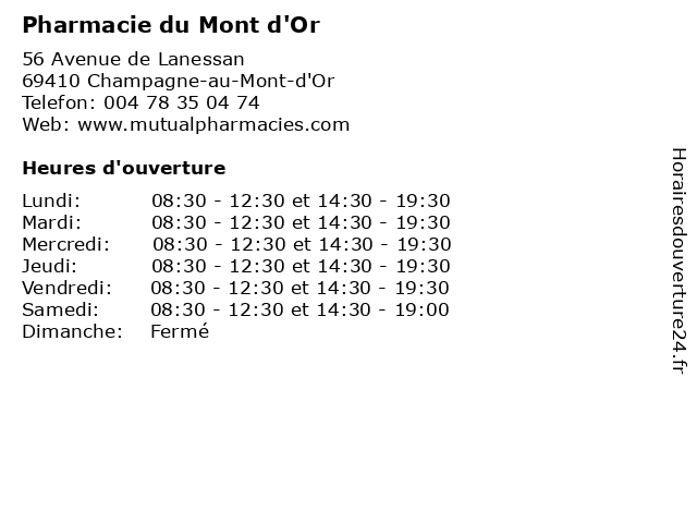 Lundi | 08:30-12:30 et 14:30-19:30 |
