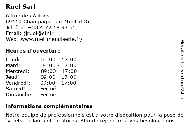 Horaires d'ouverture |